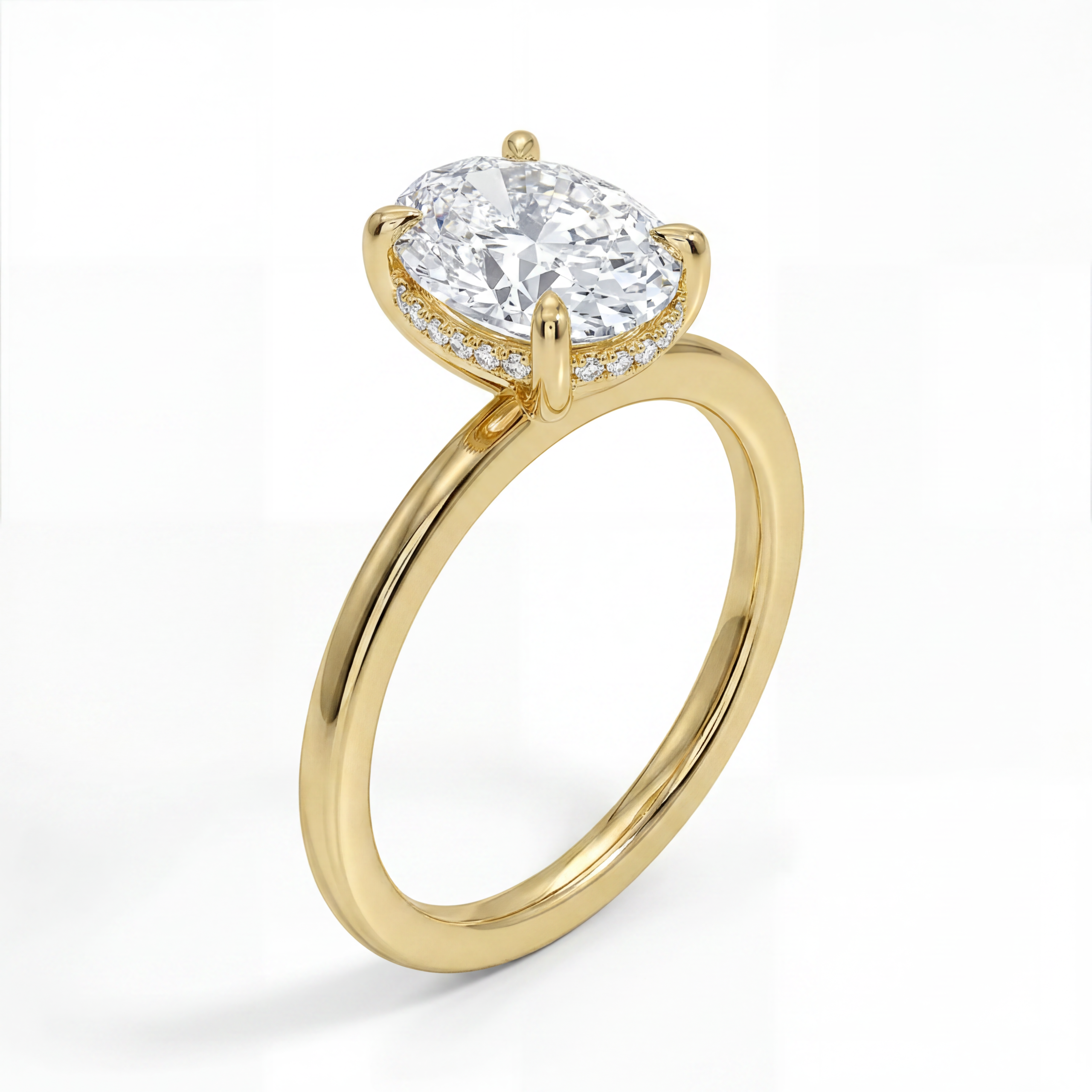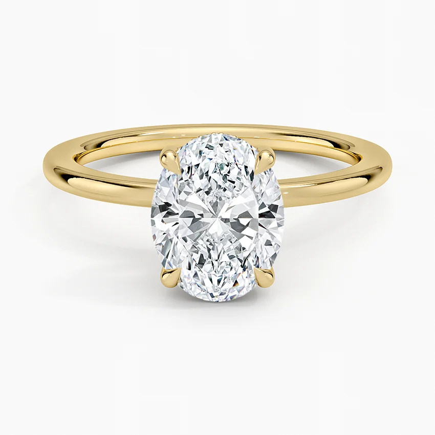 Oval kesim taşı ve taşı dört köşeden tutan pençe tırnaklarıyla alıştığımız yuvarlak kesimlerden sonra yeni klasik. Tercihinize göre 925 ayar gümüş veya 14 ayar altın seçenekleri ile seçtiğiniz karat ağırlığında laboratuvar pırlantası veya mozanit kullanılarak üretilir.