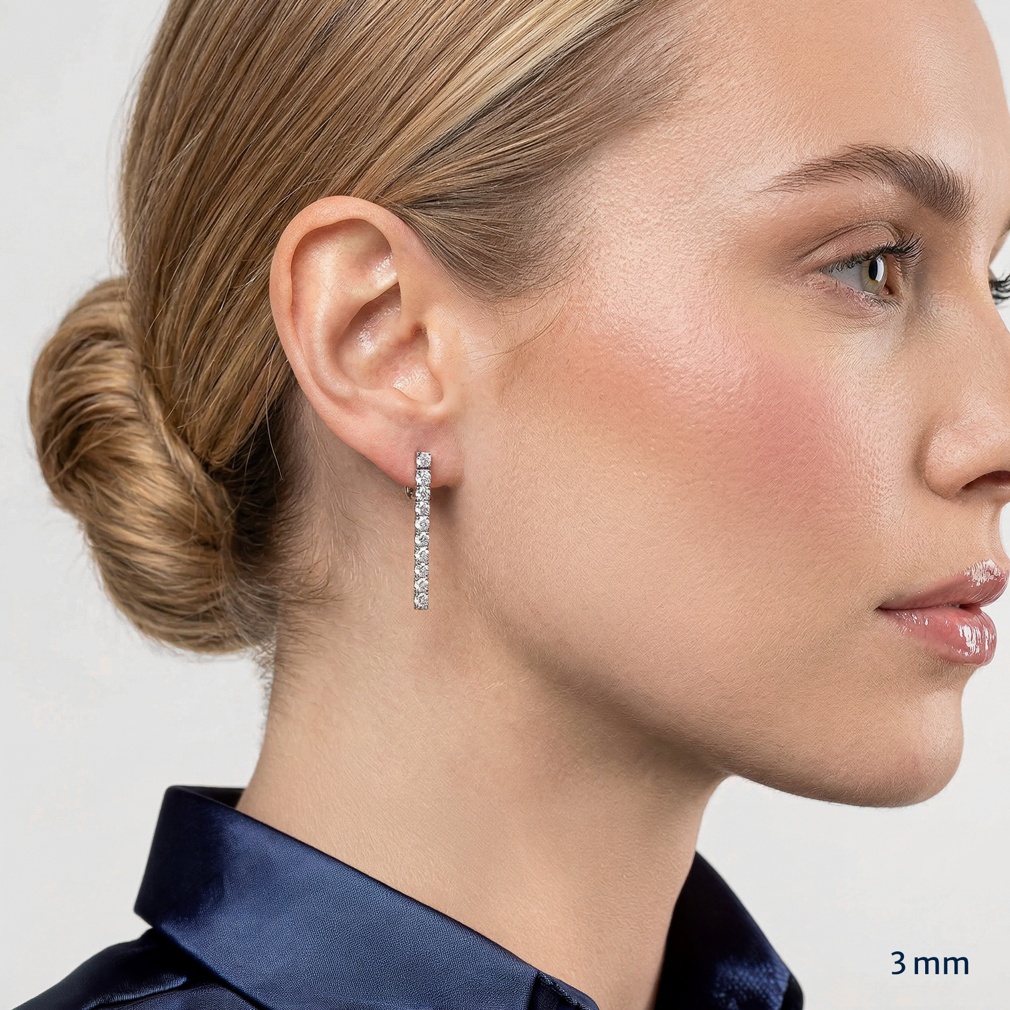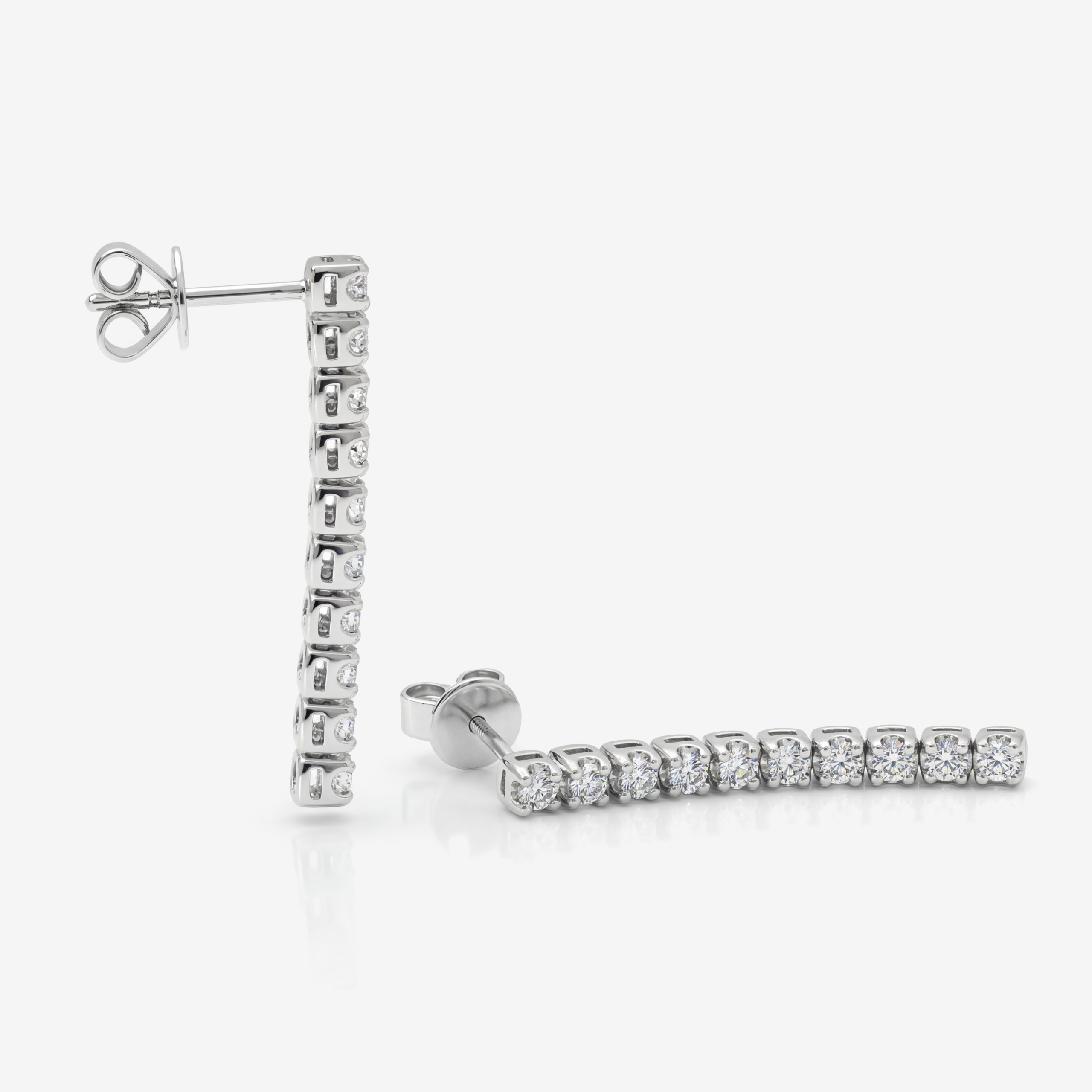 Işıltısını kesintisiz bir hat boyunca taşıyan su yolu tasarımı, zarif küpe formuyla kolye ve bileklikleriniz ile dengeli ve dikkat çekici bir bütünlük oluşturur. Tercihinize göre 925 ayar gümüş veya 14 ayar altın seçenekleri ile seçtiğiniz taş boyunda laboratuvar pırlantası veya mozanit kullanılarak üretilir.